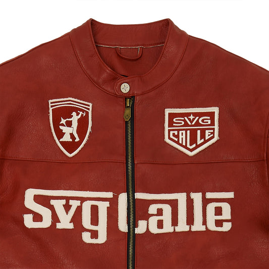 Leather Crop Racing Jacket Red