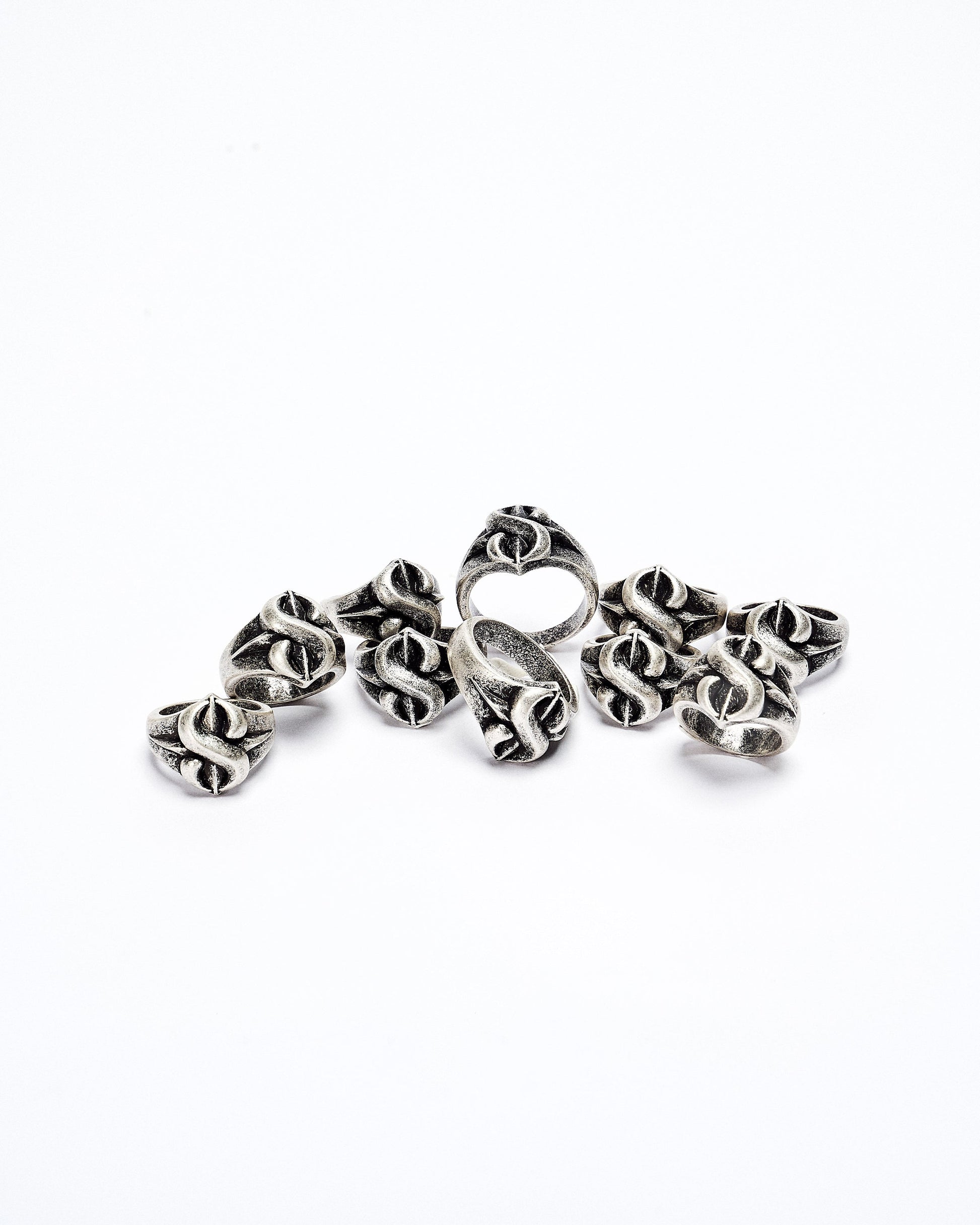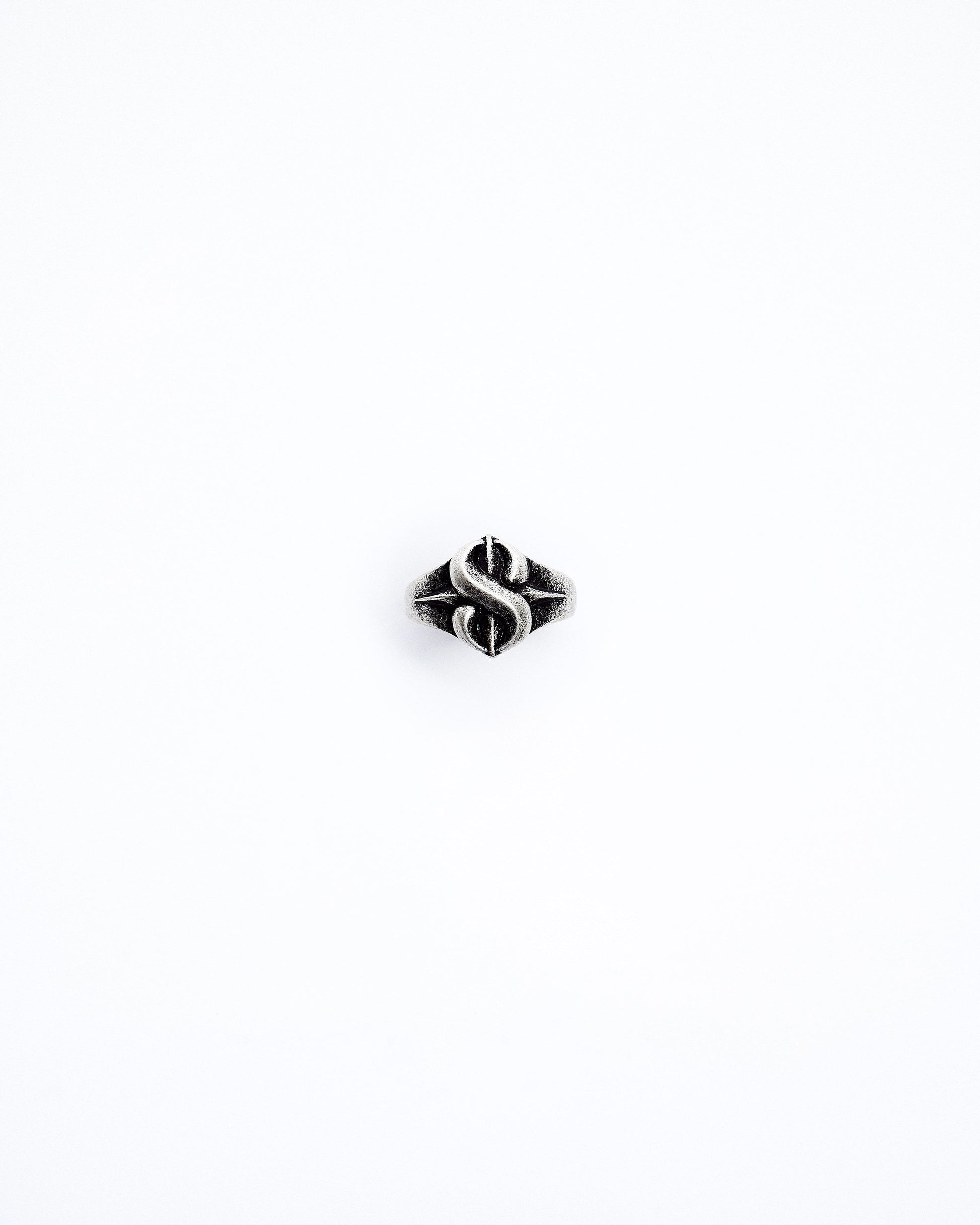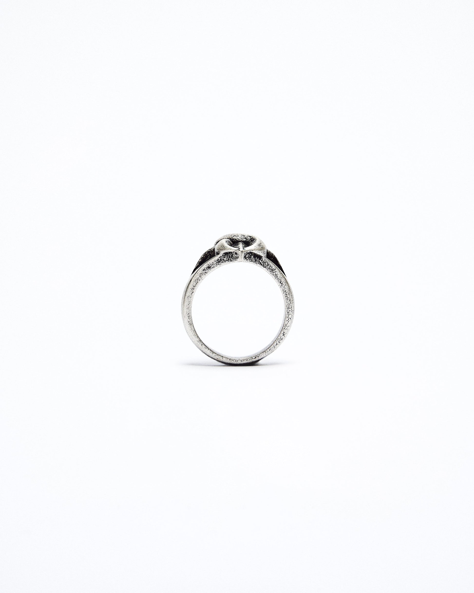 This 8-Coil Ring is crafted from white brass with a vintage finish and stainless steel, featuring a unique 8th anniversary logo design for a timeless, commemorative accessory.