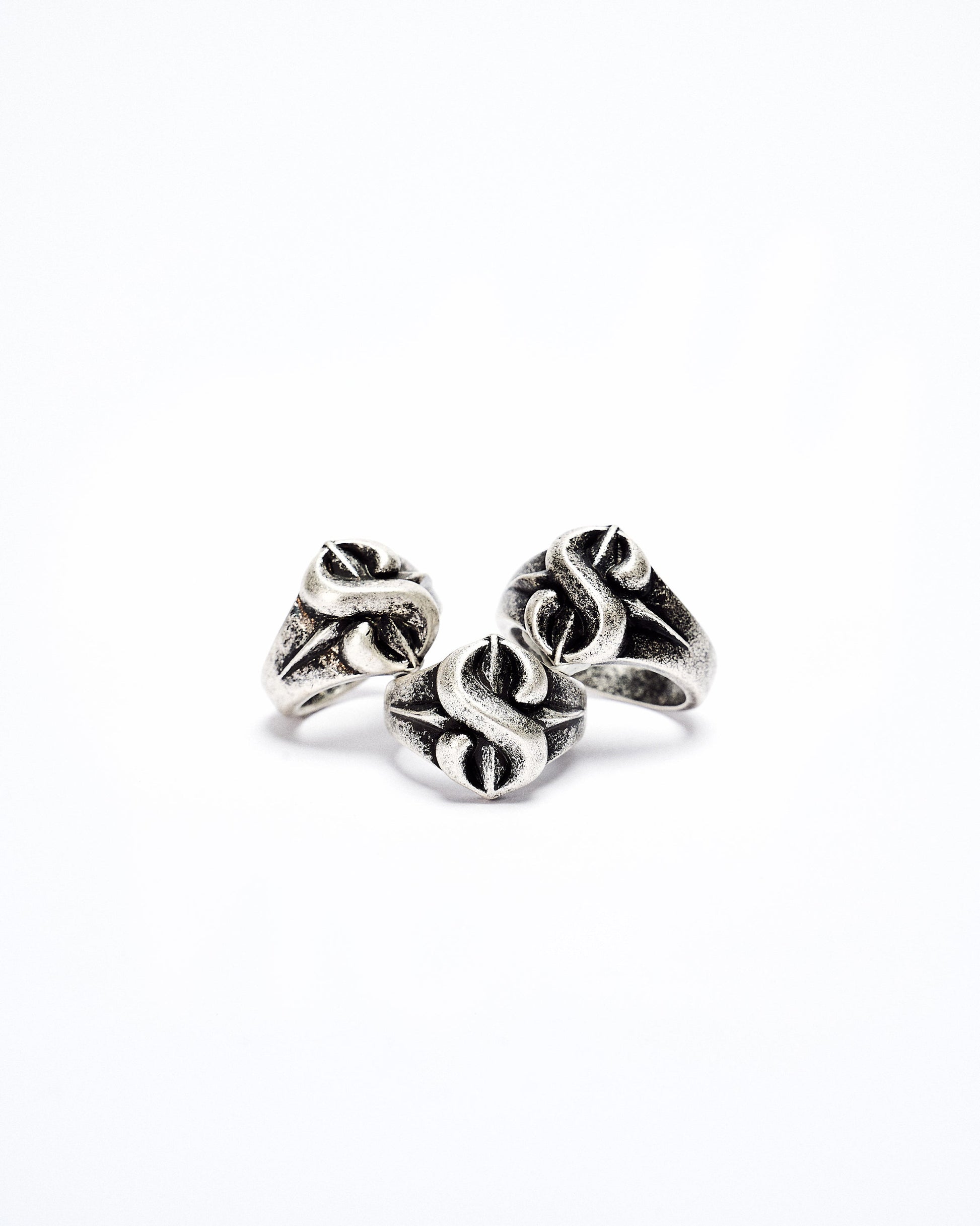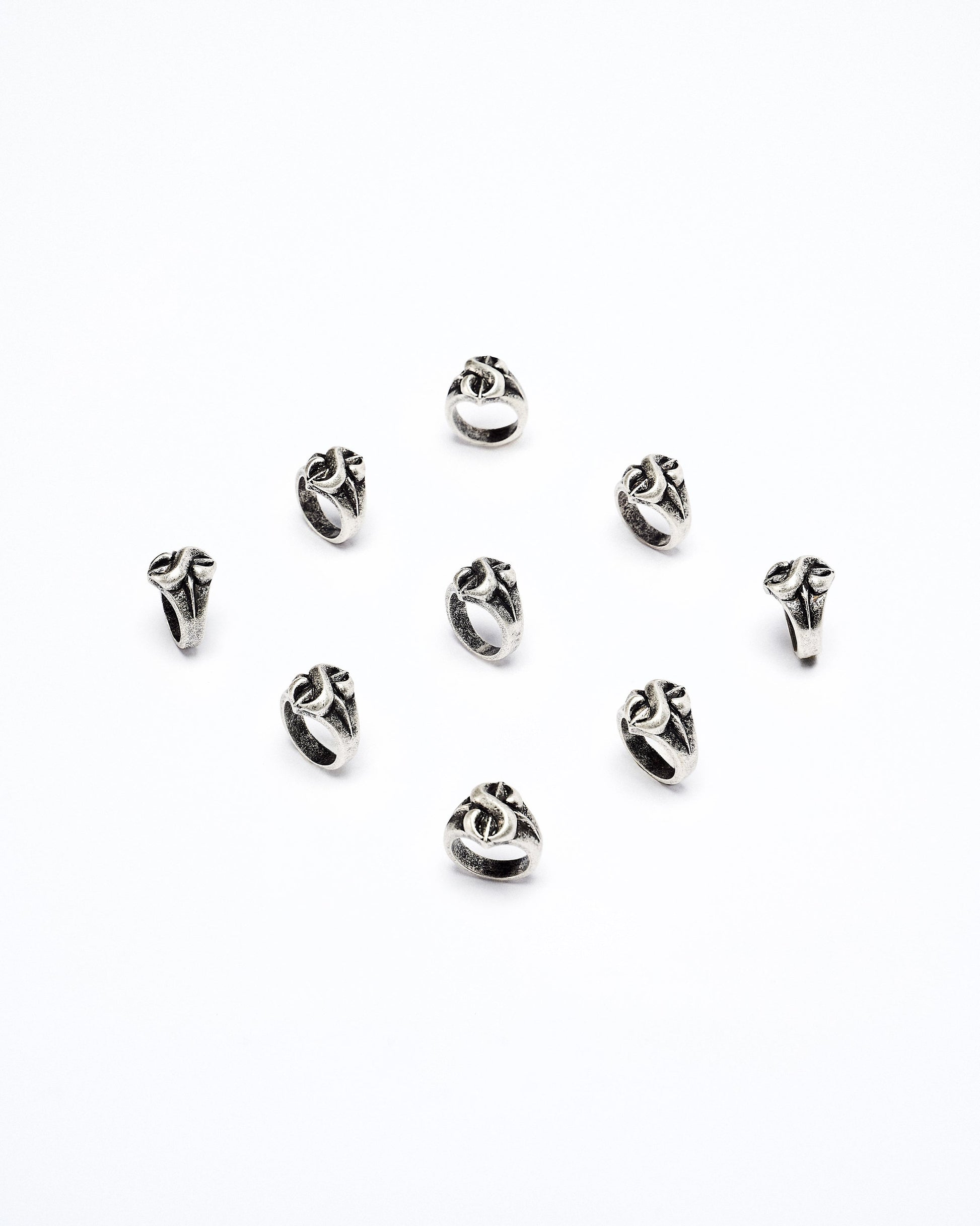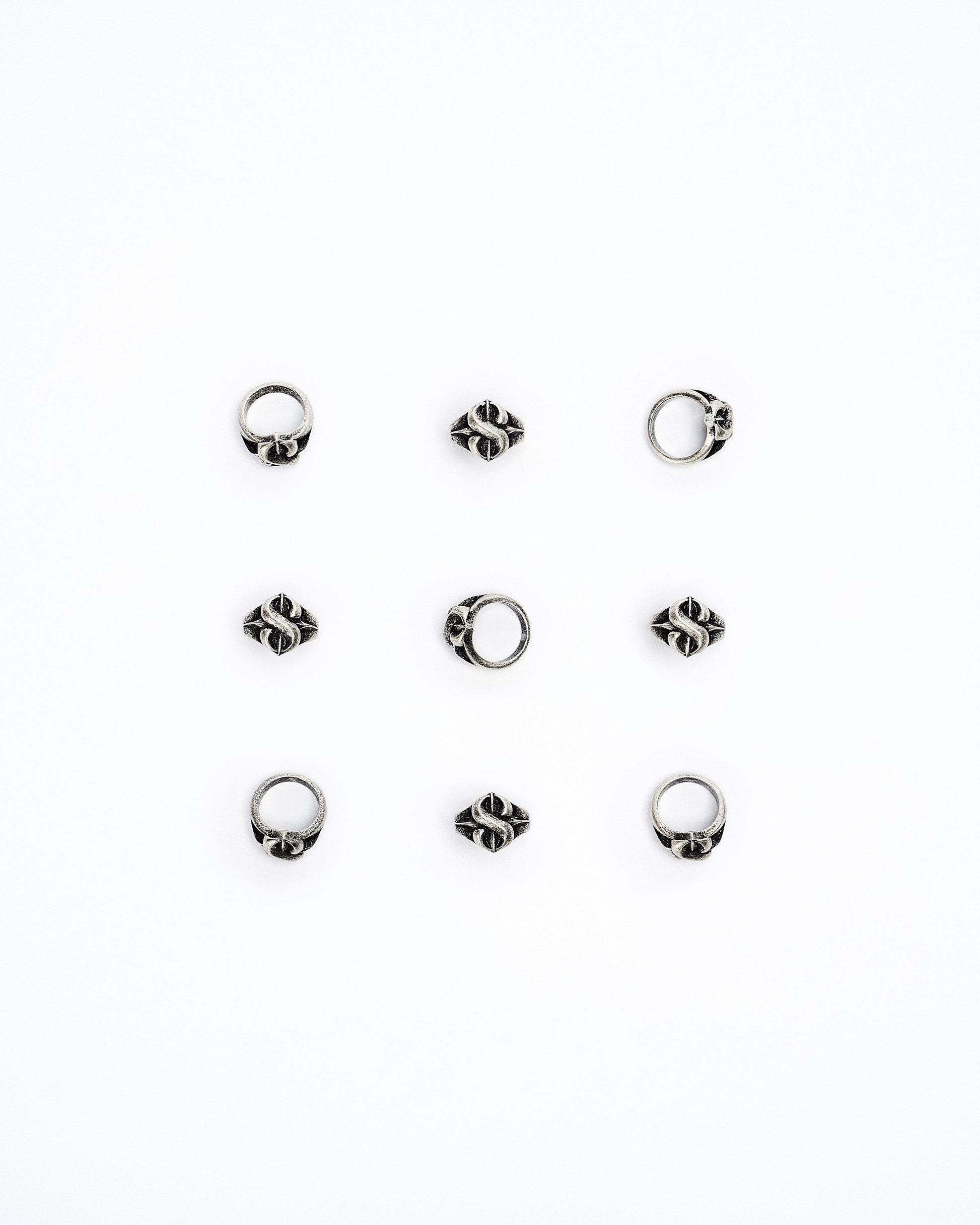 This 8-Coil Ring is crafted from white brass with a vintage finish and stainless steel, featuring a unique 8th anniversary logo design for a timeless, commemorative accessory.