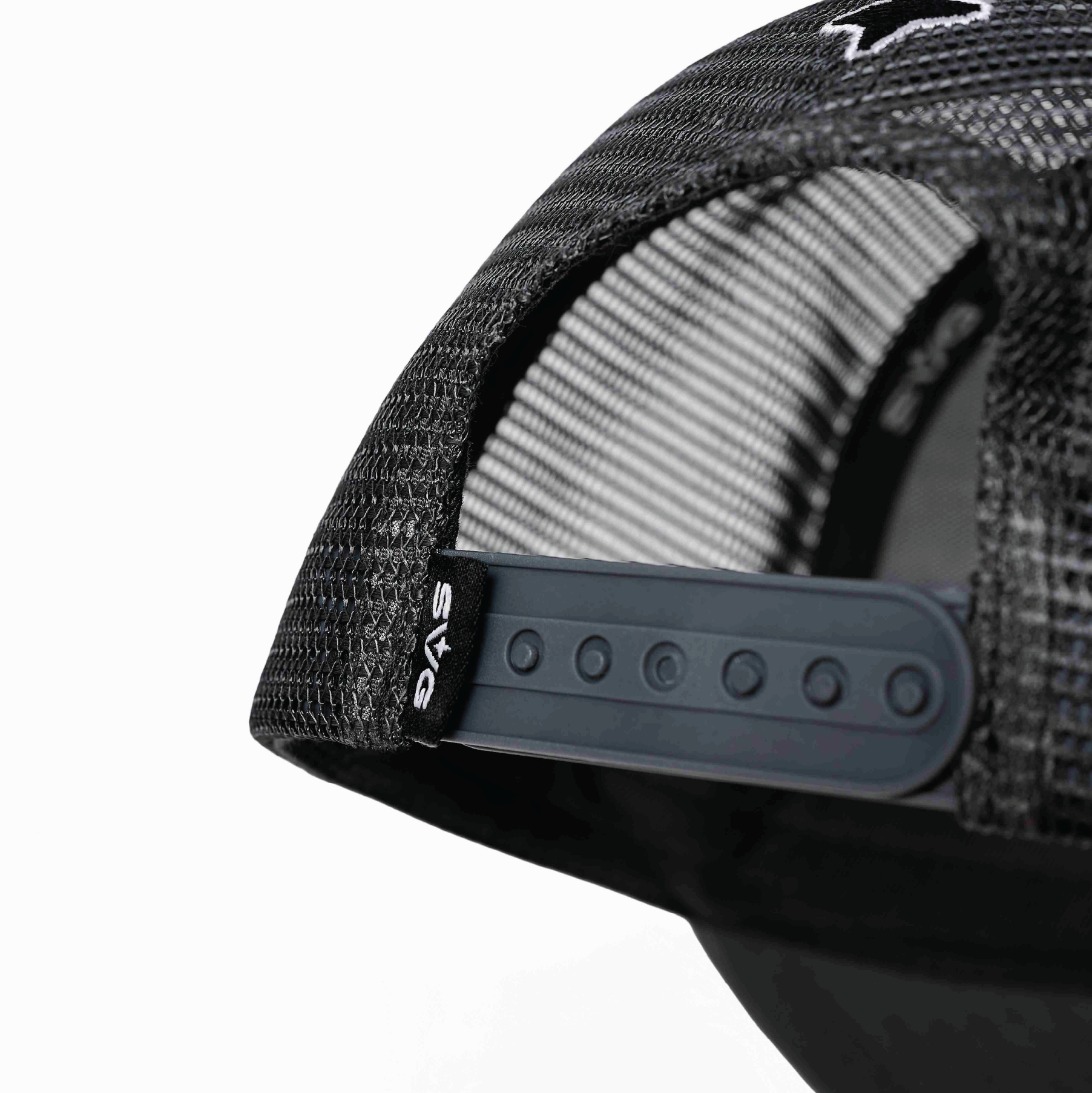 Made from 100% cotton, featuring leather embroidery and a leather SVG tag. Available in Black, Blue & Grey.