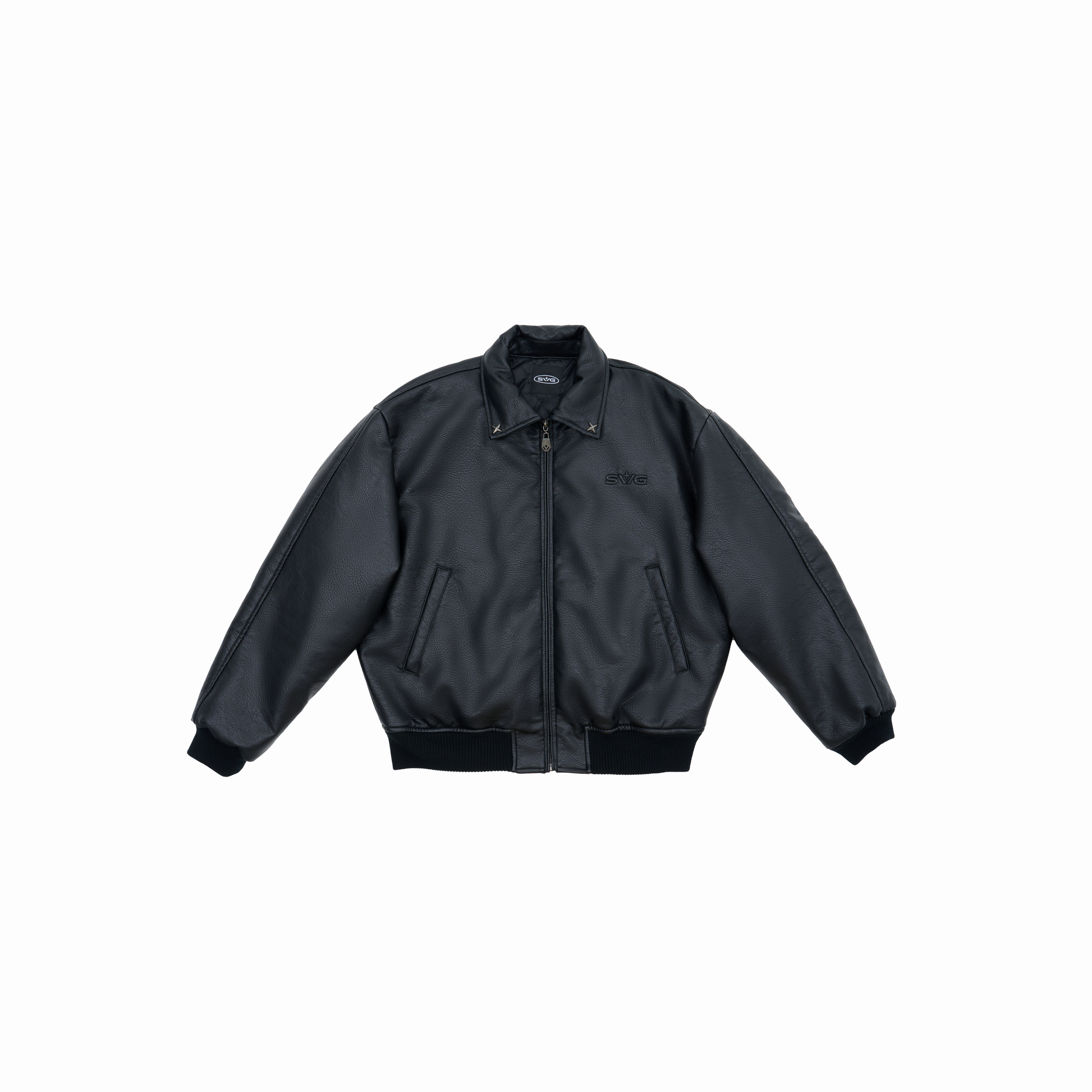 Designed for bold expression and everyday wear, this jacket is made from a 50% PU and 50% polyester thick leather blend. It’s built with quilted padding on the inside for a warm puffed structure, while the front features detailed embroidery accents. The back is highlighted with a striking large embroidered design, making it a true statement piece. Available in two colorways: black and maroon.