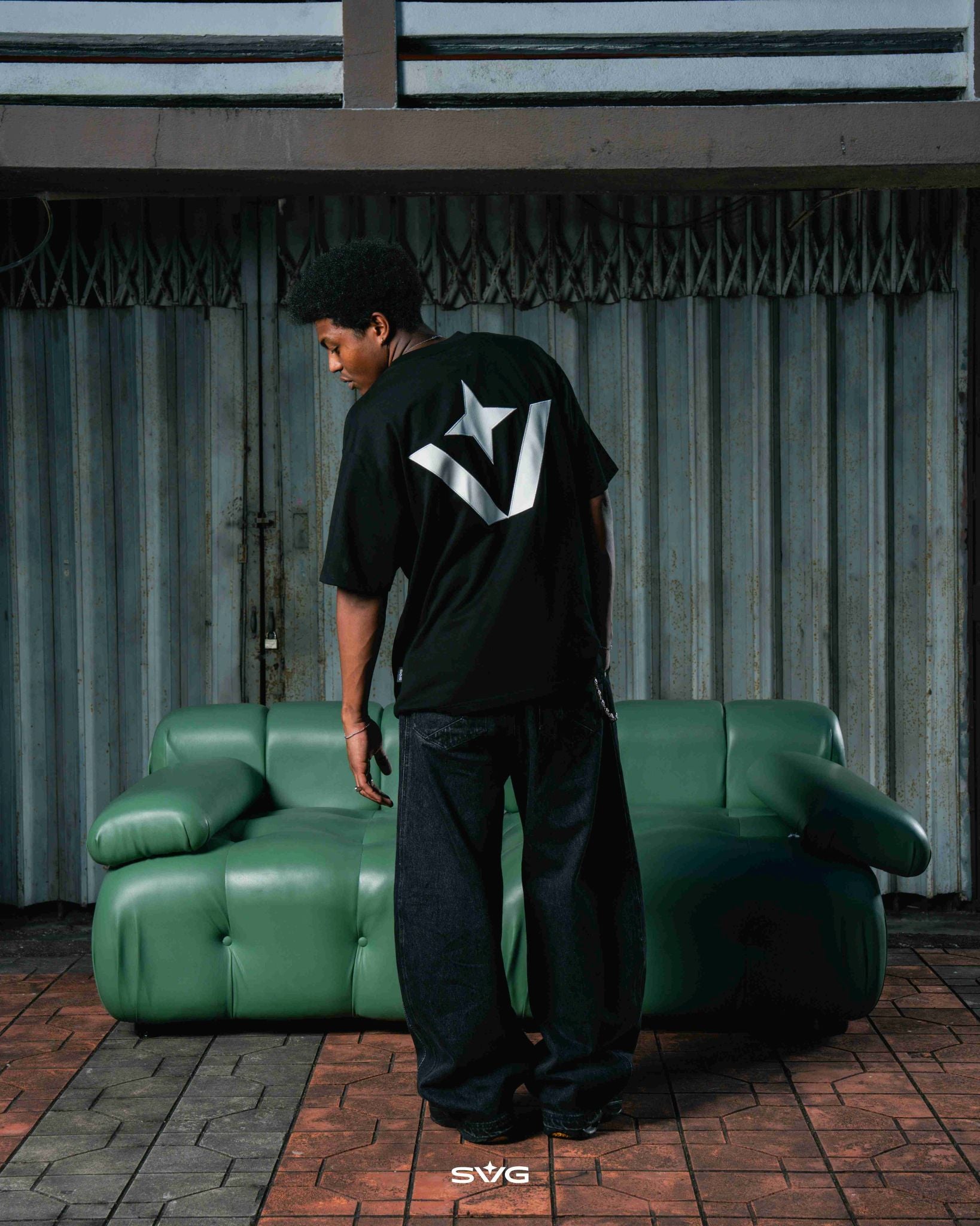 Victory Embroidery Leather Tee Black